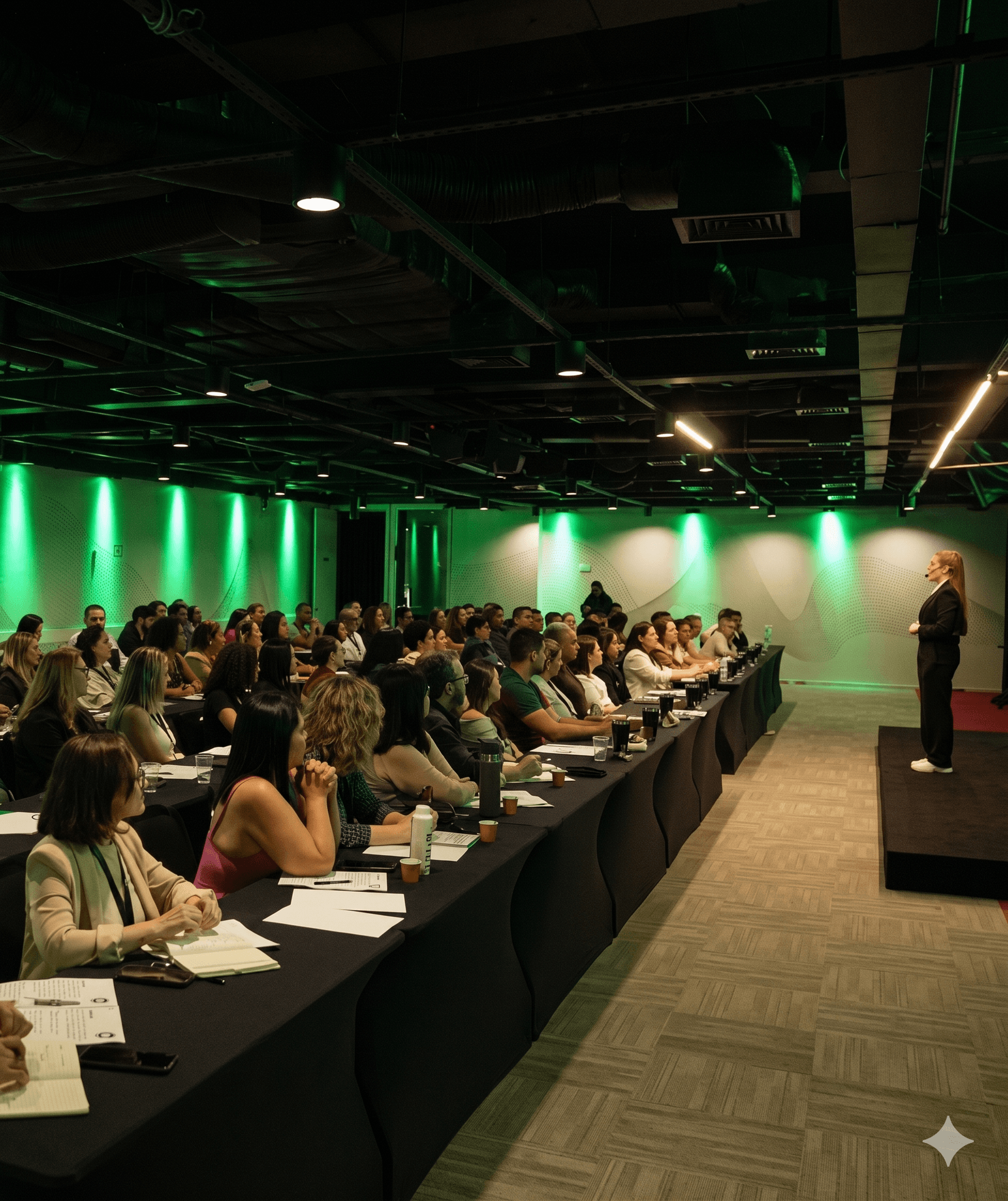 Uma imersão presencial de dois dias para profissionais que já construíram carreira, experiência e resultados,  mas sabem que existe um próximo nível.